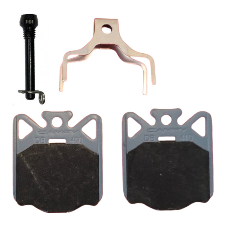 Vývoji brzdových destiček CAMPAGNOLO byla věnována veliká pozornost. Jedná se sice o komponent malého rozměru, nicméně pro správnou účinnost brzd je tento komponent velice důležitý. Firma Campagnolo má patentováno nejenom složení brzdové hmoty organického původu, ale i tvar brzdových destiček. Aby bylo docíleno co nejnižší hmotnosti, tak jsou nosné destičky vyrobeny z duralu.