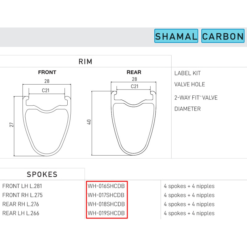 Drát Shamal Carbon DB C21 zadní pravý, včetně Alu niple, 276mm