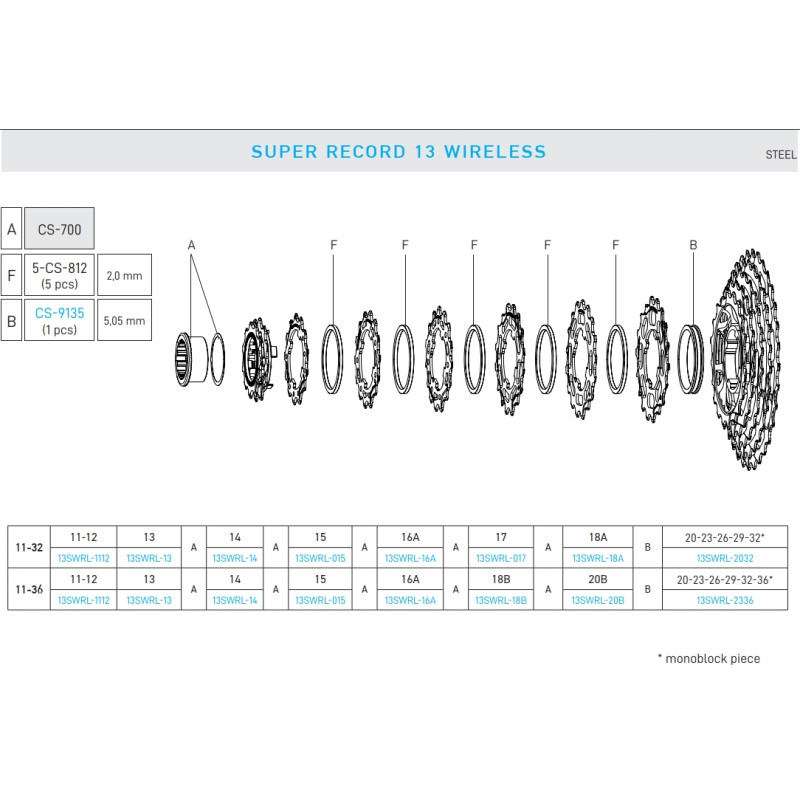 POZNÁMKA: kazeta 11-36 je kompatibilní též s gravel sadou SUPER RECORD X 1x13.