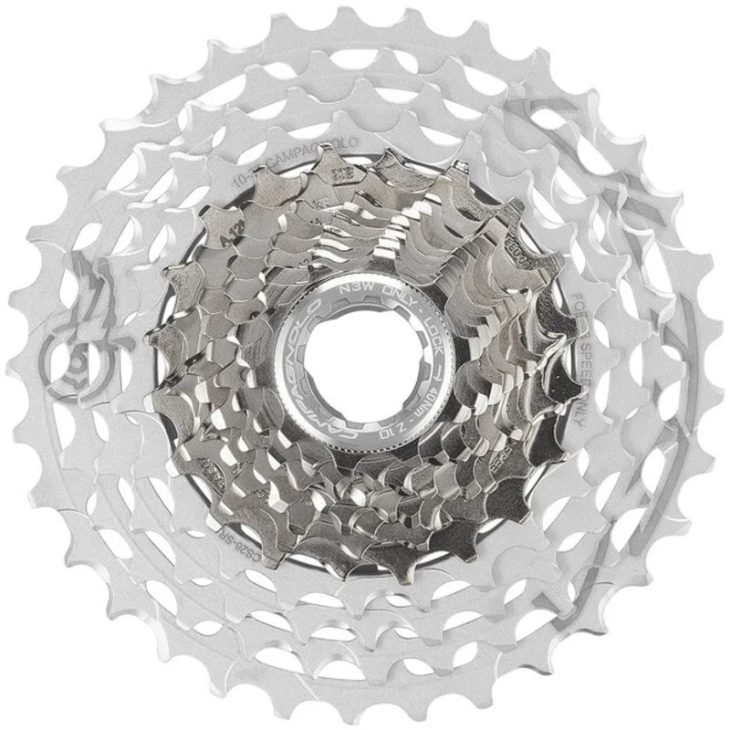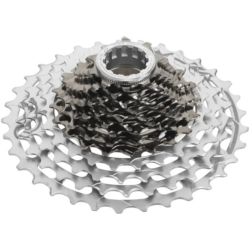 Nová 13rychlostní kazeta ULTRA představuje dokonalou kombinaci pokročilé technologie a nezaměnitelného stylu Campagnolo. Toto inovativní řešení se soustředí do největších pastorků konečné sady, které jsou vyrobeny z leteckého titanu a obrobeny z jednoho kusu materiálu – tento mimořádně přesný proces obrábění zaručuje extrémně nízkou hmotnost, rychlé a přímé řazení a zároveň zlepšuje celkovou odolnost.