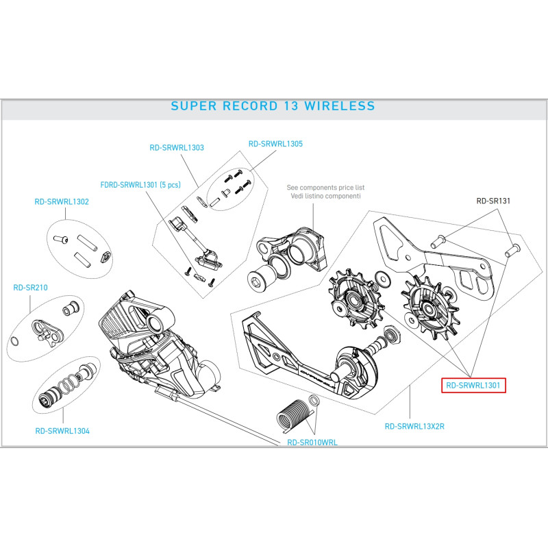 Kladky přehazovačky 13s vč. šroubků, pro Super Record 13 (pár)