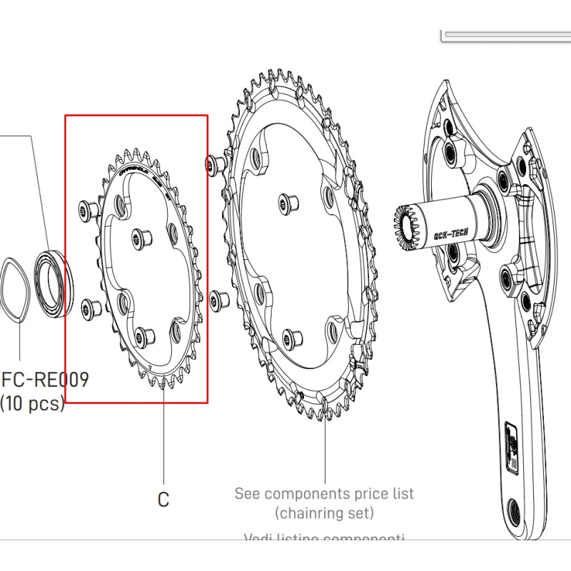 Malý převodník 39 zubů pro kliky Super Record WRL 13s (včetně spojovacích šroubů).