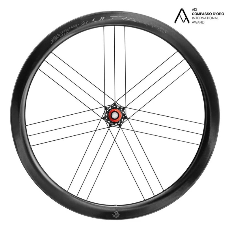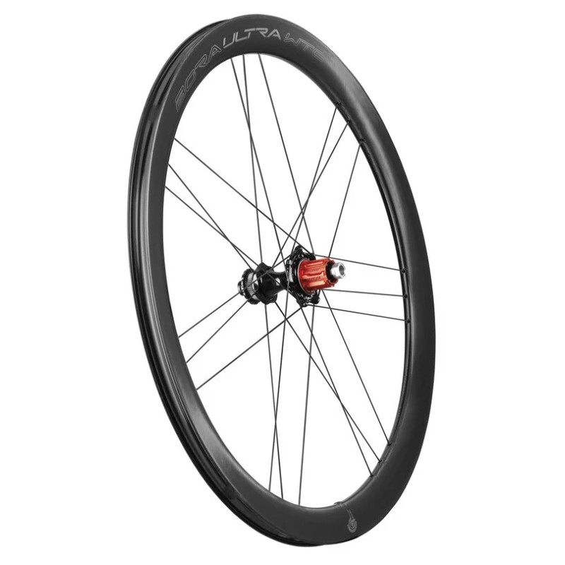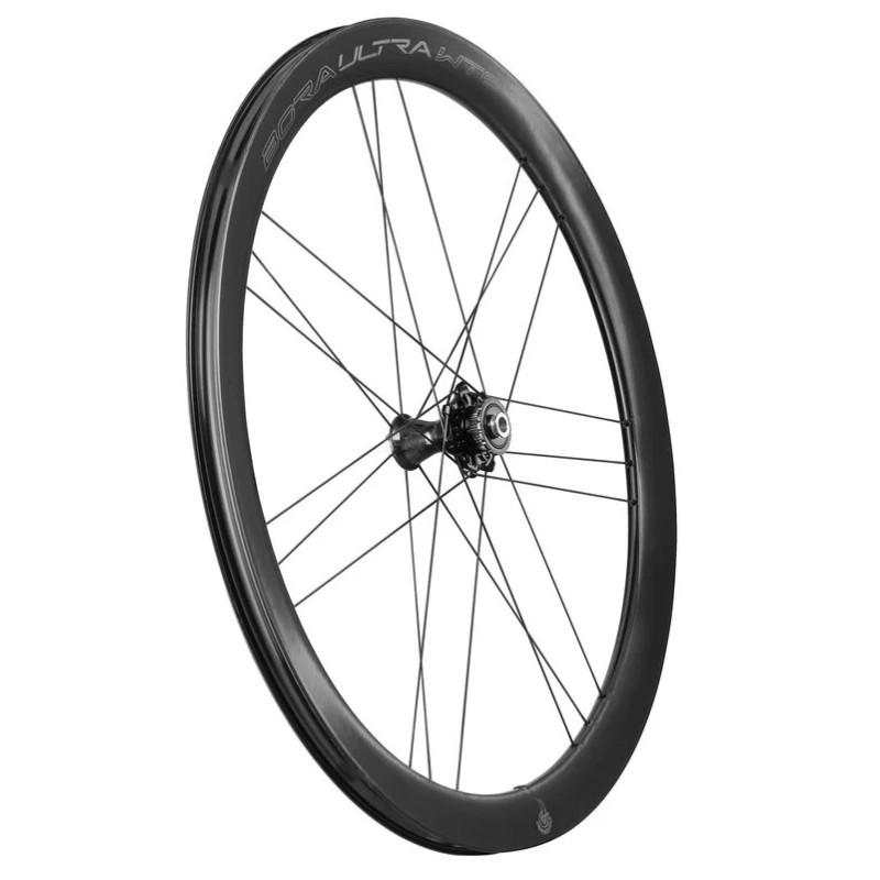 BORA ULTRA WTO 45 2WF DB BLACK CHROME edition (C23) – šperk mezi silničními zapletenými koly pro kotoučové brzdy se skvělými aerodynamickými vlastnostmi (pojmenování kol WTO je akronym slov WIND TUNEL OPTIMIZED, který vypovídá o prostředí, ve kterém inženýři firmy Campagnolo tato kola vyvíjeli). Další akronym 2WF (2 WAY FIT) poukazuje na to, že kola lze použít jak se standardními, tak i bezdušovými plášti a to bez jakékoliv další úpravy. Kola jsou osazena legendárními keramickými ložisky CULT, který mají výjimečně nízký valivý odpor. Přední kolo je napleteno na karbonovém náboji, zadní, z důvody dosažení potřebné pevnosti, na náboji duralovém.
